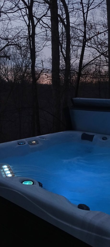 Enjoy quiet evening sunsets in the spacious hot tub overlooking a tranquil stream that feeds into Lusk Creek, cozy nights around the fire pit under the stars, and serene mornings waking to deep forest views and quiet serenity. This Shawnee forest couples cabin is perfect for those traveling to find quiet relaxation, to reconnect in nature and partake in all that The Shawnee National Forest has to offer. Our southern Illinois hot tub cabin also offers an onsite RV plug-in that hunters are sure to love. Your camper can stay comfortably on site and even expand the lodging opportunities.